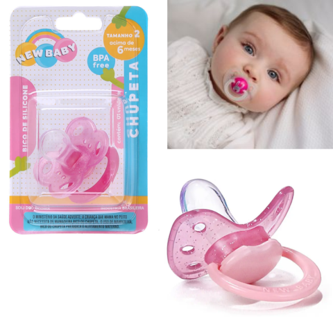 CHUPETA GLITER ROSA SILICONE BICO ASSIMÉTRICO BLISTER (24PÇS)-NEW BABYPARA VER OS PREÇOS VOCÊ DEVE ESTAR LOGADO