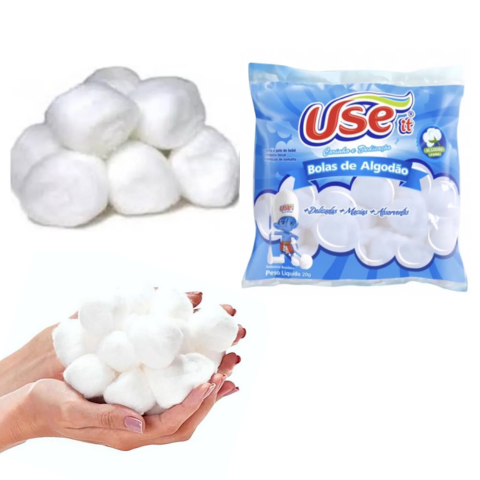 O Algodão em Bolas Brancas Use it é multiuso, ideal para higiene e cuidados pessoais, cuidados infantis, remoção de cosméticos e entre outros. É hidrófilo, macio e possui grande capacidade de absorção de líquidos, graças às suas fibras compostas por 100% de algodão natural, isentas de impurezas e substâncias gordurosas. Fabricado com material de alta qualidade, não desfia e mantém sua integridade mesmo após o uso. A embalagem contém várias bolinhas, adequadas para uso individual e evitando desperdícios.