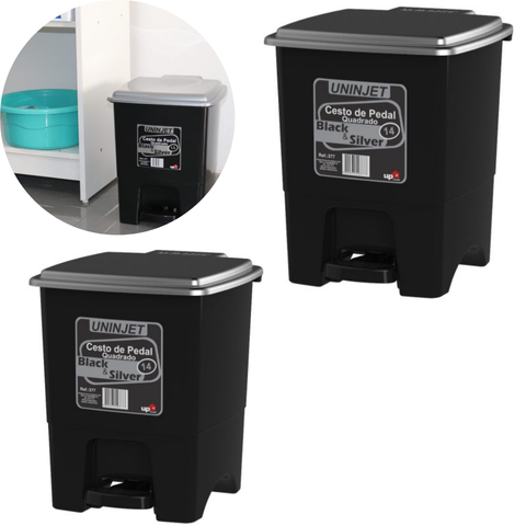 CESTO C/PEDAL 14LTS PRETO (6PÇS)-UNINJET