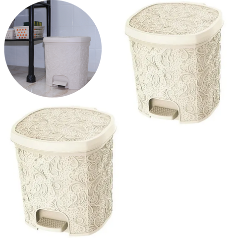 O Cesto de Lixo 8lts Palha Uninjet Renda Floral Pedal simplifica esse aspecto com seu sistema de abertura por pedal. Com um simples toque do pé no pedal resistente, a tampa se abre suavemente, permitindo que você descarte resíduos sem a necessidade de tocar na tampa com as mãos.