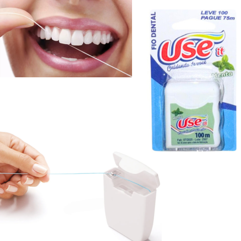 O Fio Dental Use it é um complemento eficaz para higiene bucal diária. Ele ajuda a remover resíduos de alimentos e placa bacteriana que se acumulam entre os dentes e no espaço entre a gengiva e os dentes, onde a escovação não alcança. Além disso, possui um sabor de menta que proporciona uma sensação de frescor por mais tempo. O fio dental é vendido em embalagens de 25 metros e é ideal para quem busca uma limpeza mais completa e eficiente.