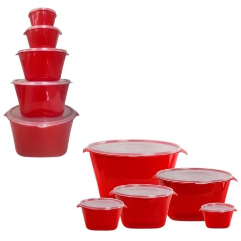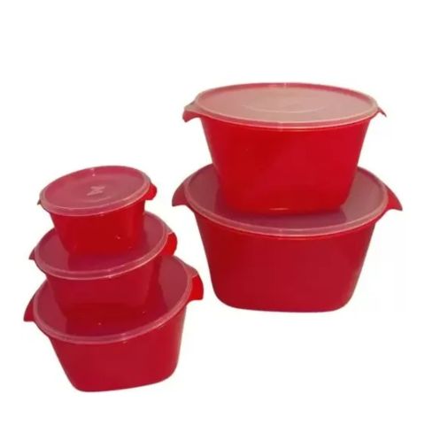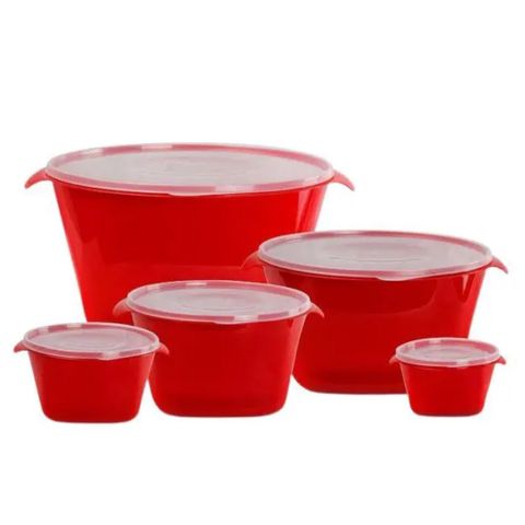 Kit Rubi 5pçs Acquamar Vermelho, um produto essencial para quem busca praticidade e estilo na cozinha. Com design redondo e material plástico de alta qualidade, ele é ideal para diversas utilizações, mantendo a sua funcionalidade e estética. Acompanha tampa, facilitando o armazenamento e transporte dos seus alimentos.