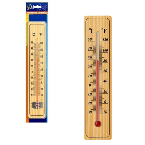 TERMÔMETRO EM MADEIRA P/AMBIENTE (12PÇS)-123ÚTIL