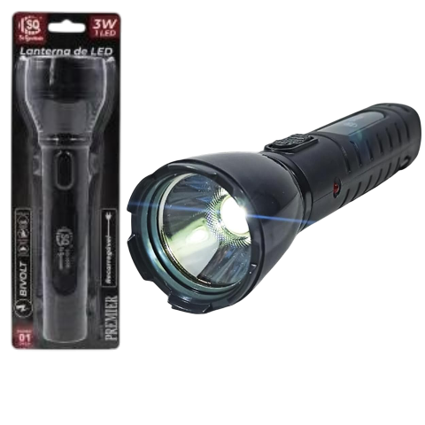 LANTERNA DE LED 3W BIVOLT/RECARREGÁVEL (6PÇS)-SQ QUALIDADE