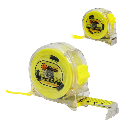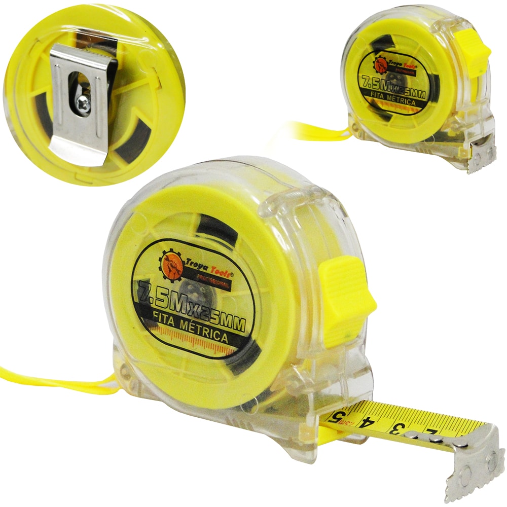 A trena métrica da Caerus plástica revestida de borracha para proteger a ferramenta de deformações em caso de impacto. É equipada com mecanismo anatômico e três opções independentes de fixação da fita para maior comodidade de trabalho.